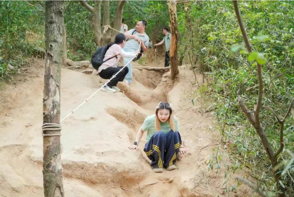 上午9时,全体员工分为5支队伍,开启了全长9.2公里的“灵白线”徒步挑战。这条以崎岖山路、砂石陡坡闻名的经典徒步路线,成为检验团队协作的“试金石”。
