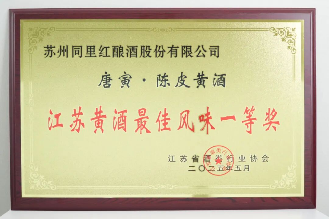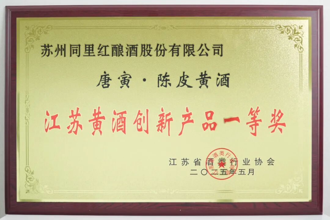 2025年6月,苏州同里红酿酒股份有限公司打造的明星产品“唐寅·陈皮黄酒”,凭借其独特的风味和突破的创新理念,在江苏省酒类行业协会评选中并摘江苏黄酒“最佳风味”“创新产品”两项一等奖。这既是对同里红坚守非遗酿造技艺的朝礼,亦是对同里红勇于开拓创新的赞誉。