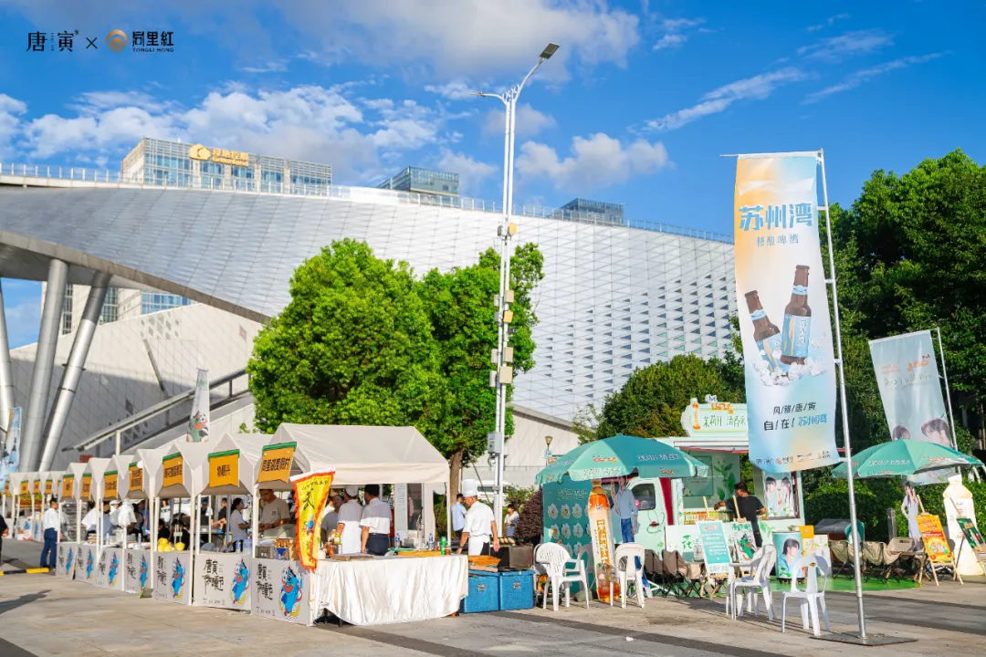 在比赛的“第二现场”,由同里红、吴江文旅集团、苏州湾文化中心、吴江区食品协会携手打造的“唐寅微醺节”依旧灯火璀璨,人流如织,一场融合城市潮流与微醺夏日特色的狂欢,正持续“升温”……