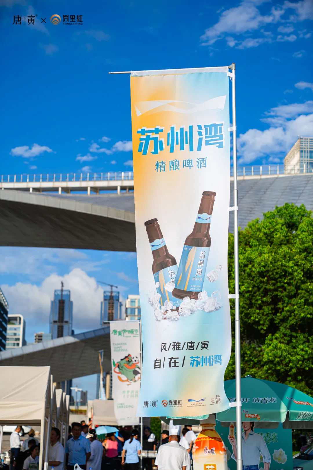 同里红与苏州湾文化中心联合打造的“唐寅·苏州湾精酿啤酒”因口感细腻、麦香果香浓郁、清凉爽口等特点,成为大家观赛看球的“必备搭子”,现场试饮不断、销售不停。