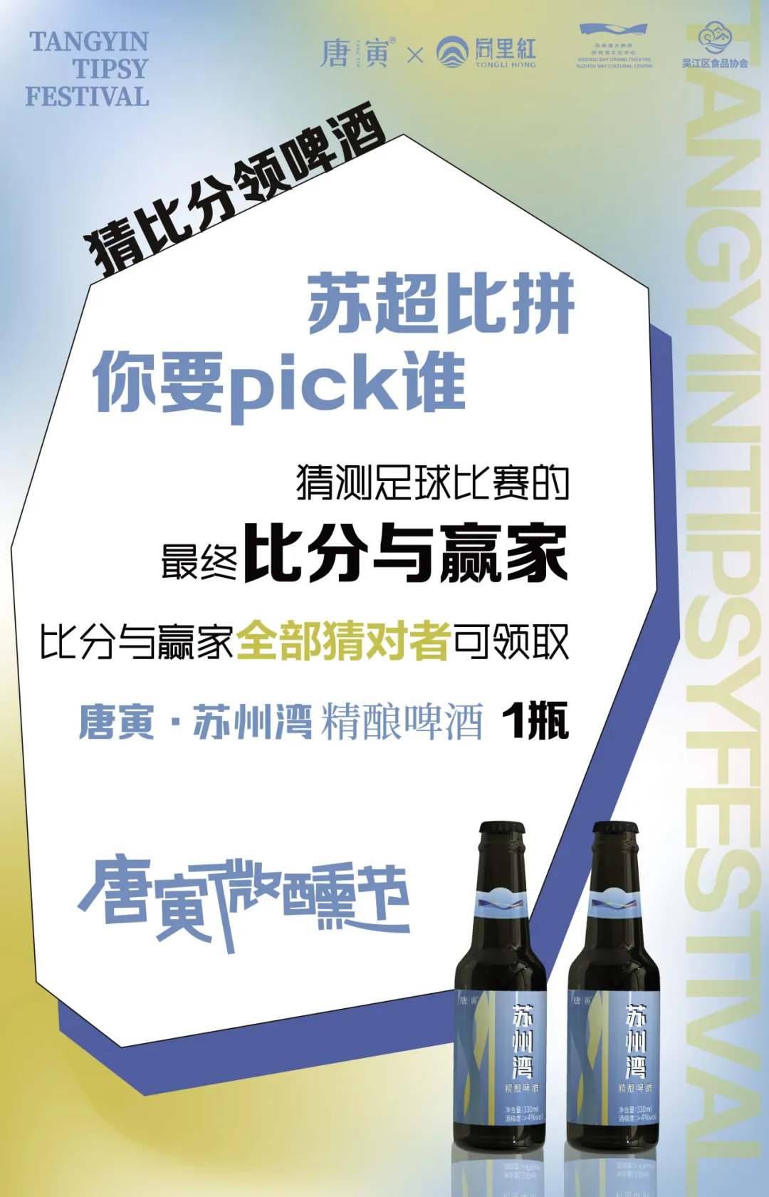 猜测足球比赛的最终比分与赢家,比分与赢家全部猜对者可免费领取“唐寅·苏州湾精酿啤酒”1瓶